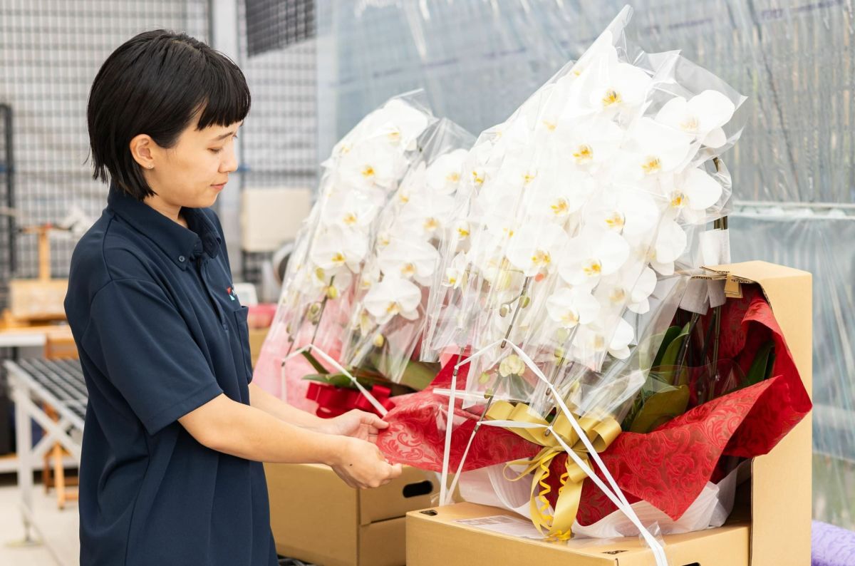 自社便でお届けできない地域へは優良産地より新鮮で良質な胡蝶蘭をお届けいたします。
