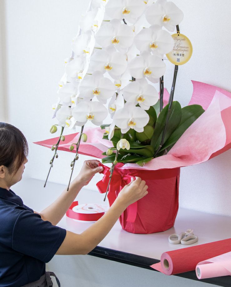 胡蝶蘭はその美しさと高級感から、贈り物や特別な場面に最適な花です。お客様のご予算に応じて、さまざまな価格帯の胡蝶蘭をご用意しております。